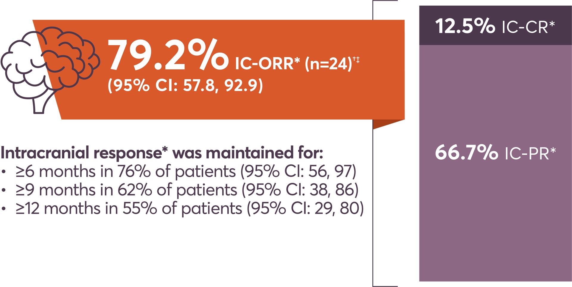 Over three-quarters of patients with measurable baseline CNS metastases had a durable intracranial response – with 12.5% achieving a complete response1